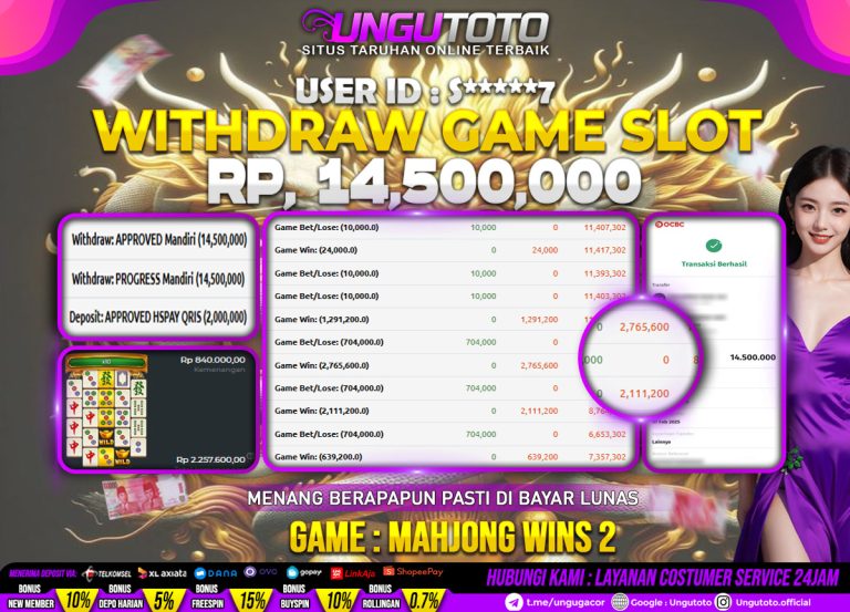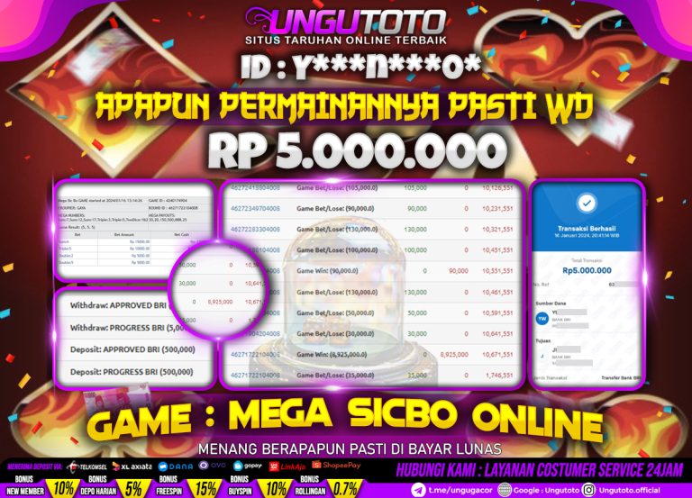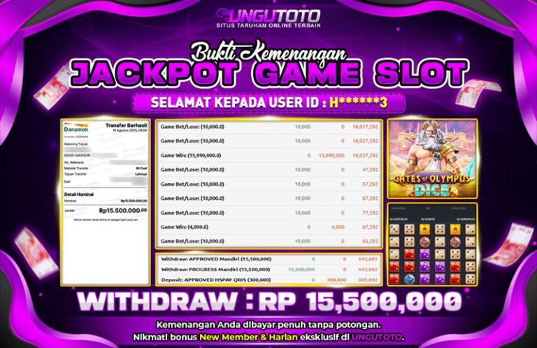 BUKTI WD TERBARU GAME : GATES OF OLYMPUS 1000 DEPOSIT : 3,360,000.- WITHDRAW : 21,209,000.- UNGUTOTO BANDAR JUDI TERPERCAYA BERIKUT PANDUAN CARA BERMAIN DENGAN AMAN Halo para penggemar judi online di Indonesia! Jika Anda sedang mencari bandar judi terpercaya UNGUTOTO menghadirkan pengalaman judi yang gacor dan amanah, Anda telah datang ke tempat yang tepat….